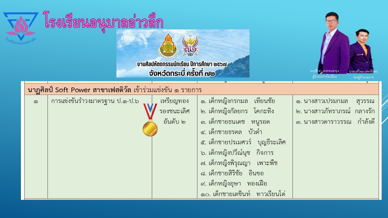 รางวัลเหรียญทองอันดับ 2 รุ่นสุดยอดจินตคณิต ป.2 การแข่งขันจินตคณิตชิงแชมป์ภาคใต้ตอนบน ณ เซ็นทรัล จังหวัดสุราษฎร์ธานี วันที่ 8 กุมภาพันธ์ 2568