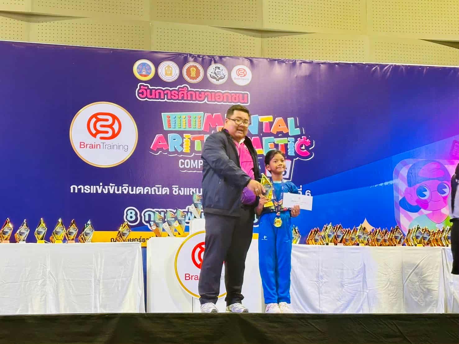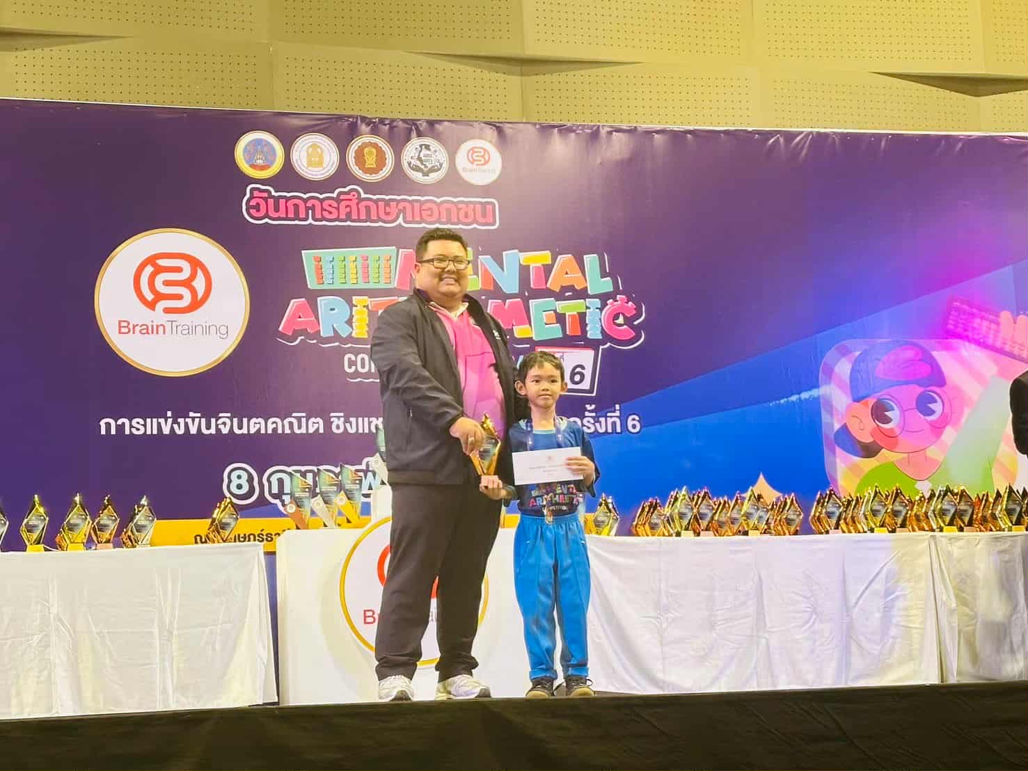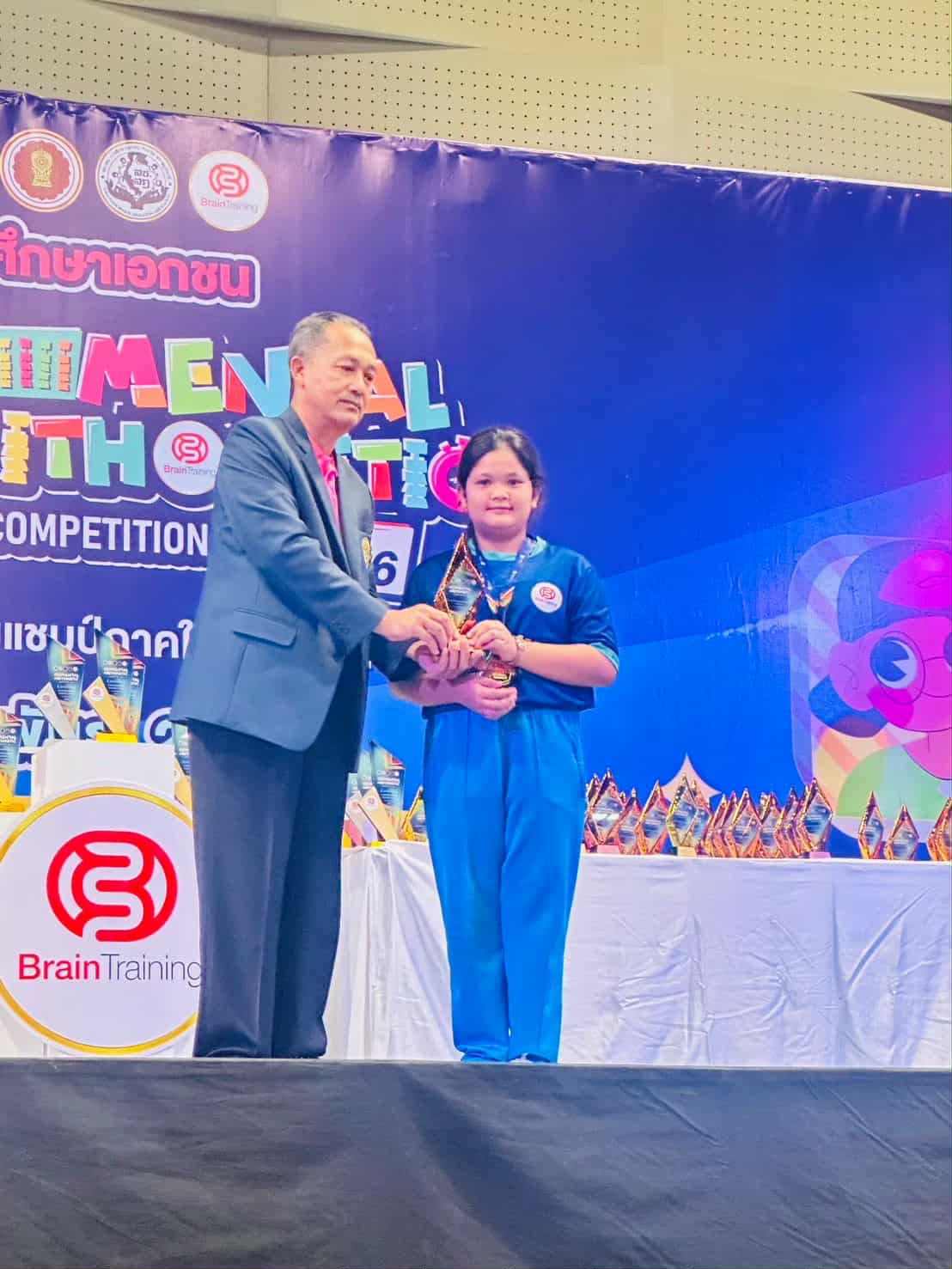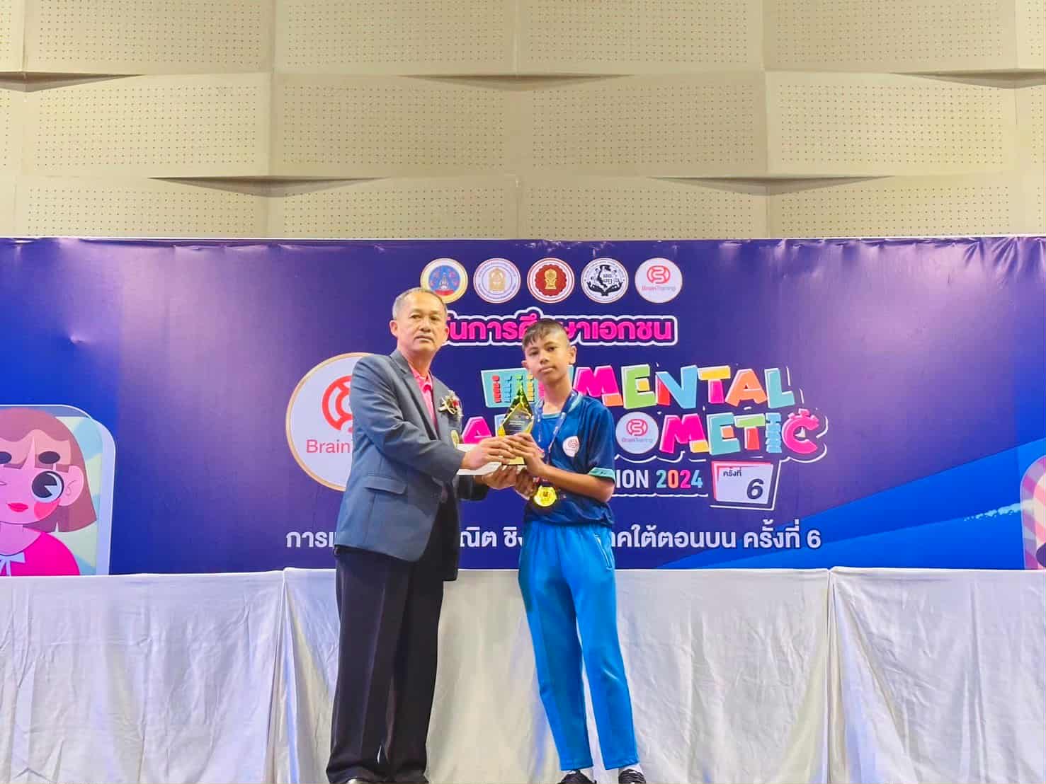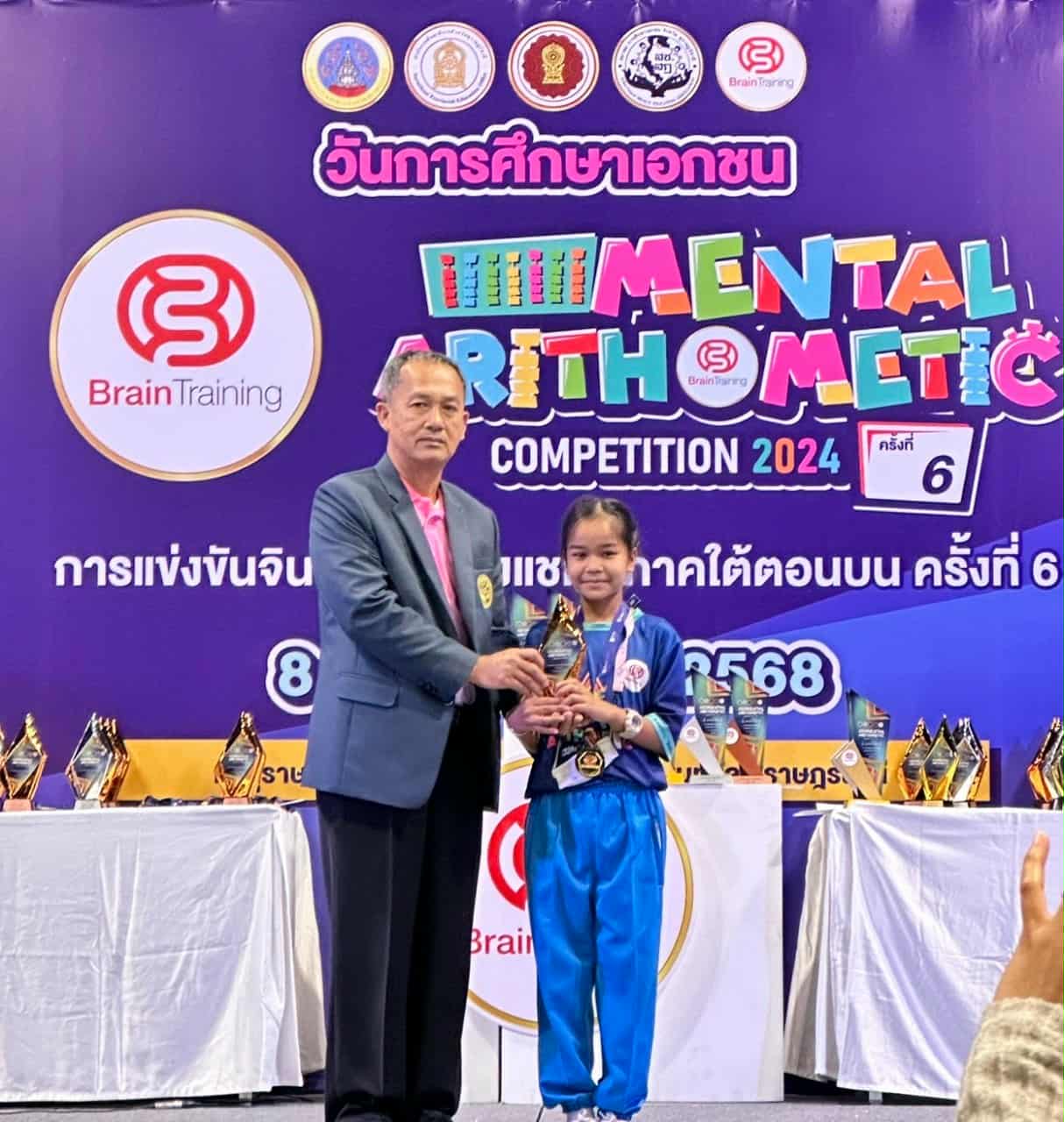 รางวัลชนะเลิศ รุ่นสุดยอดจินตคณิต ป.5 การแข่งขันจินตคณิตชิงแชมป์ภาคใต้ตอนบน ณ เซ็นทรัล จังหวัดสุราษฎร์ธานี วันที่ 8 กุมภาพันธ์ 2568