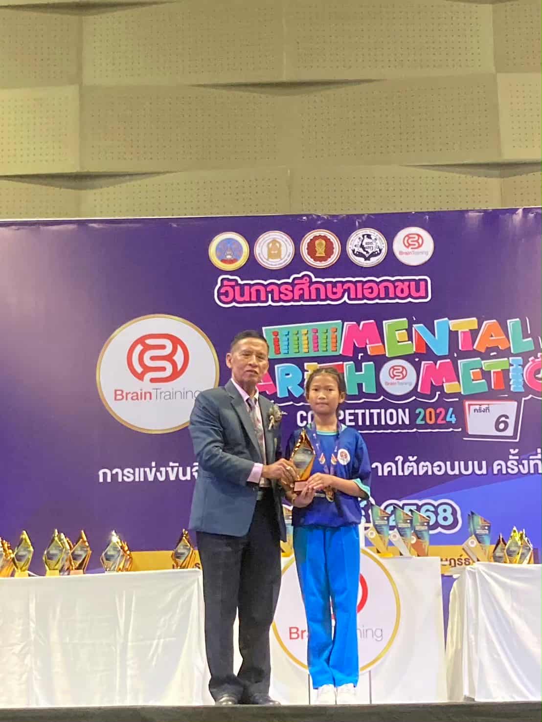 ถ้วยรางวัลที่ 7 รุ่นMedium ป.4 การแข่งขันจินตคณิตชิงแชมป์ภาคใต้ตอนบน ณ เซ็นทรัล จังหวัดสุราษฎร์ธานี วันที่ 8 กุมภาพันธ์ 2568